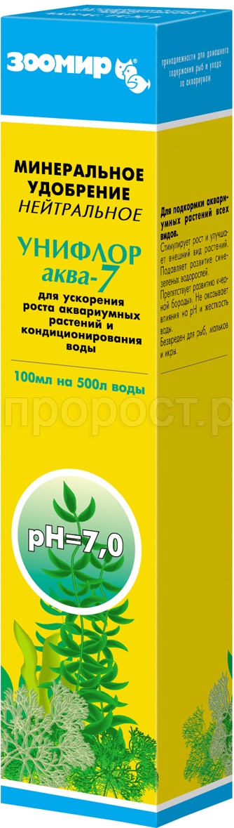 5.Животные доступны для заказа самовывозом из сети зоомаркетов "ПРОРОСТ". Питомцы не доставляется транспортной компанией.Способ применения: удобрение рекомендуется применять один раз в неделю, исходя из расчета: 2 мл на каждые 10 литров воды в аквариуме. В качестве мерной емкости можно использовать колпачок флакона, который вмещает приблизительно 5 мл раствора. Необходимое количество удобрения разбавить в 5-10 раз отстоявшейся воде и равномерно разлить по аквариуму. Желательно, чтобы при этом работало какое-либо перемешивающее устройство. Если в фильтрационной системе аквариума есть активированный уголь, то на первые двое суток после внесения удобрения его необходимо удалить.